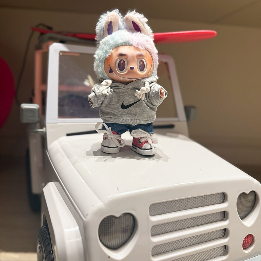 🌀 “Cool Cruisin’” Labubu Fit – Grey Hoodie Edition