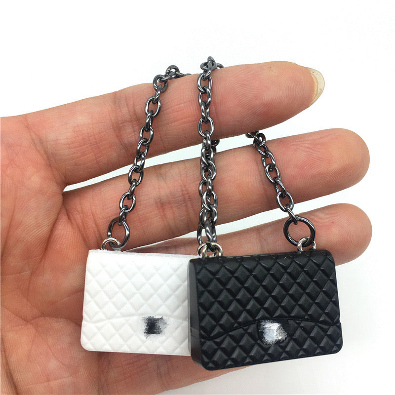 Double the style, double the chic. This option of mini purses in classic black and white brings instant luxury to your Labubu’s wardrobe. Choose your favorite color! Each bag features a bold chain strap and the iconic flap design — perfect for mixing, matching, and making a statement.